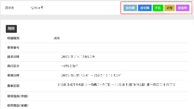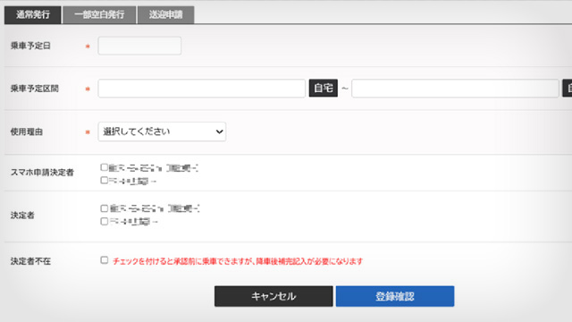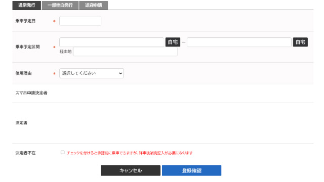 乗車に対しての申請・承認が可能です。