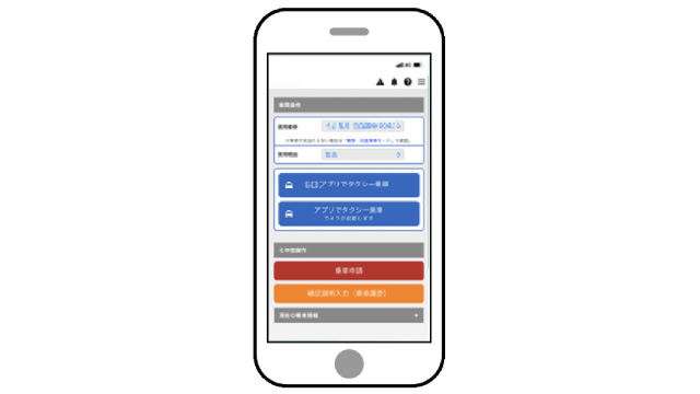申請や乗車操作をスマホから行うことができます。当アプリと外部のタクシーアプリと自動連携して乗車を行います。