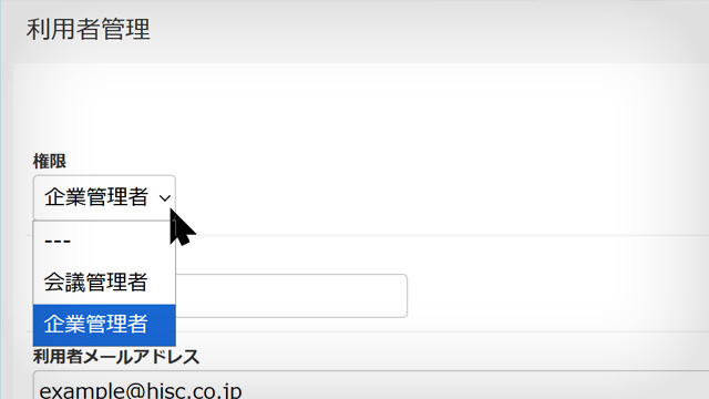 会議作成ができるユーザーの登録・管理が可能。発表者や参加者は登録は不要です。