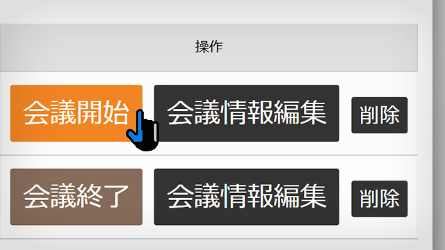会議作成後、管理画面より会議を開始、終了させることができます。会議前や会議後、会議時間以外でのアクセスは不可。大事なデータを守ります。